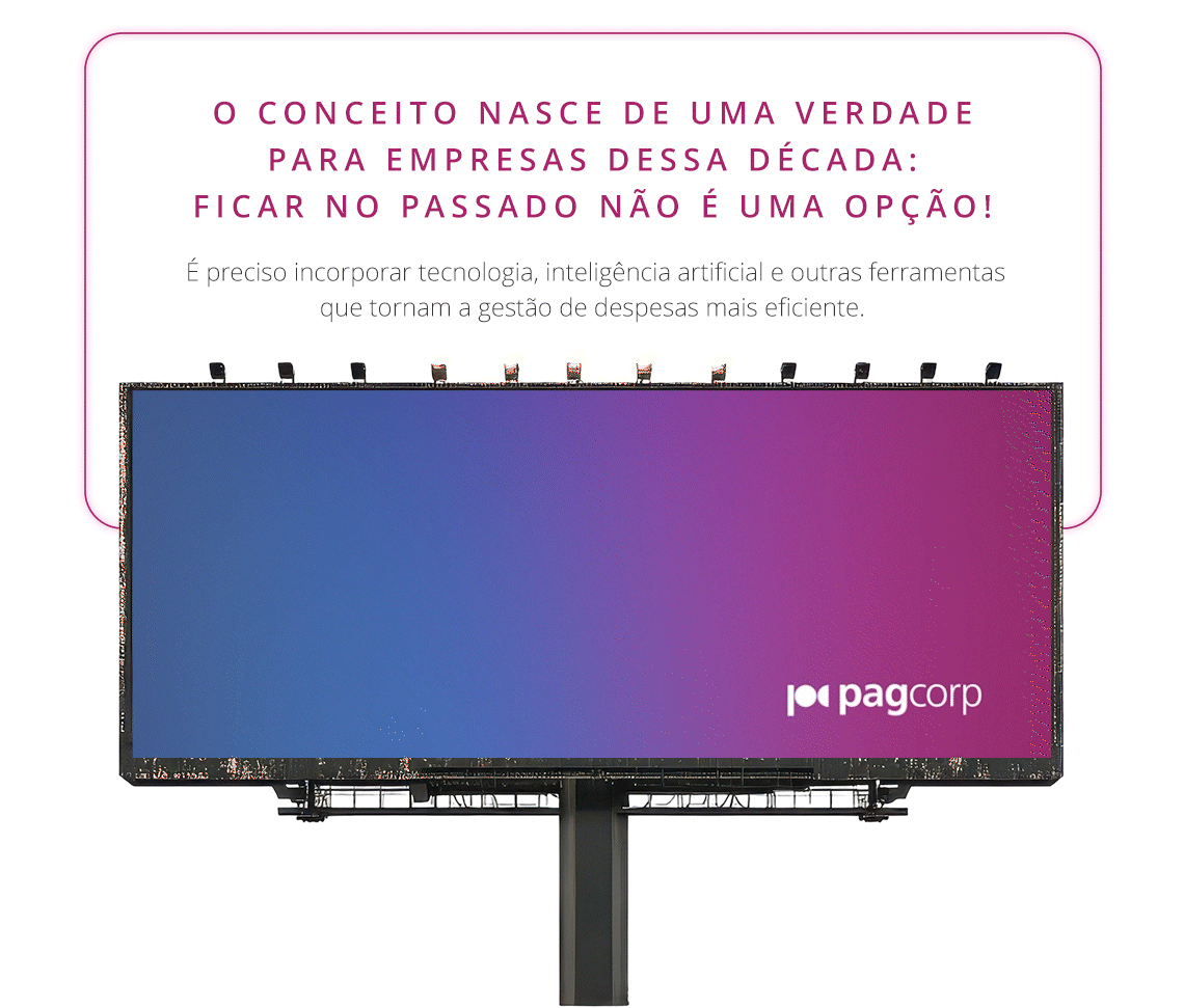 A campanha foi construída a partir de um processo de pesquisa de mercado, públicos e aprofundamento no universo da solução PagCorp.
